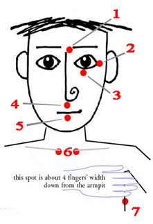 tapping at the eyebrow point.